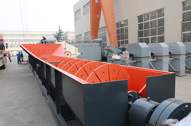物料由給料箱均勻給入,連續(xù)給主槽體中注入一定量的水,傳動部帶動螺旋軸以一定的速度旋轉(zhuǎn),迫使物料在槽體中翻轉(zhuǎn)滾動并向排料口運動,細粒級物料和雜質(zhì)隨溢流水經(jīng)溢流堰排出,粗粒度物料由排料口排出,從而實現(xiàn)物料的洗選、分級、除雜和脫水。