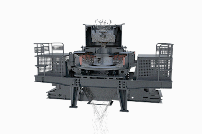 VSI制砂機(jī)運(yùn)用先進(jìn)的選擇性破碎和解理破碎原理,直接對(duì)物料施加足夠動(dòng)能,并通過(guò)沖擊將動(dòng)能轉(zhuǎn)換成克服物料所需的破碎能而破碎。物料基本沿其自然的紋理面、解理面斷裂,粒形好、自身消耗低。全中心進(jìn)料:物料落入進(jìn)料斗,經(jīng)中心進(jìn)料孔進(jìn)入高速旋轉(zhuǎn)的甩輪,在甩輪內(nèi)被迅速加速,其加速度可達(dá)數(shù)十倍重力加速度,然后高速?gòu)乃唭?nèi)射出,首先與反彈后自由下落的另一部分物料進(jìn)行撞擊,然后一起沖擊到物料襯層(石打石)或反擊塊(石打鐵)上,被反彈斜向上沖擊到渦流腔的頂部,又改變其運(yùn)動(dòng)方向,偏轉(zhuǎn)向下運(yùn)動(dòng),又與從葉輪流道發(fā)射出來(lái)的物料撞擊形成連續(xù)的物料幕。這樣,一塊物料在渦流破碎腔內(nèi)受到兩次、或更多次撞擊、摩擦和研磨破碎作用。被破碎的物料由下部排料口排出。