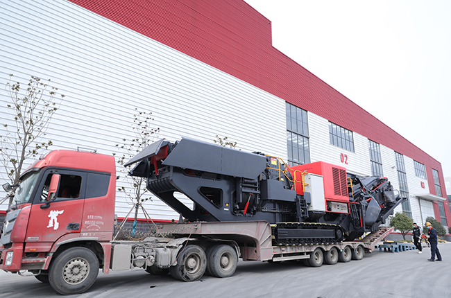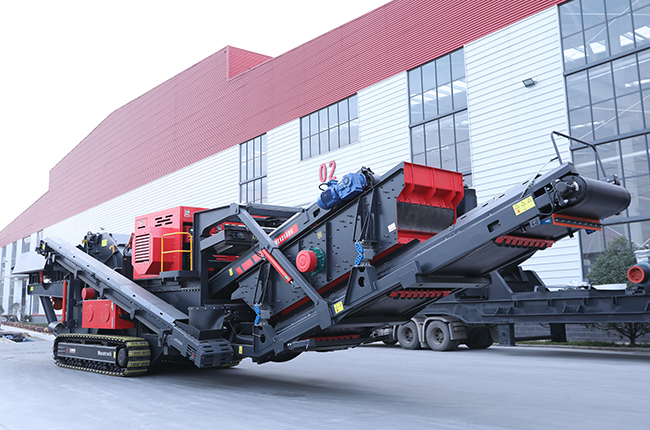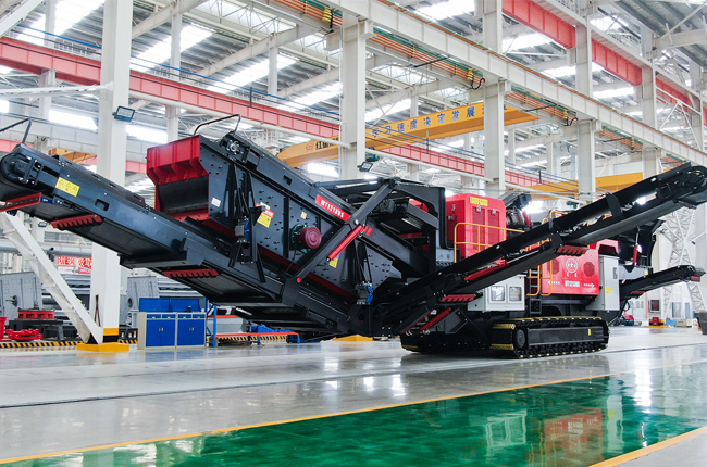 物料經(jīng)給料機(jī)均勻輸送到顎式破碎機(jī)內(nèi),經(jīng)顎式破碎機(jī)初破后的物料經(jīng)輸送機(jī)送入反擊/圓錐破碎機(jī)進(jìn)行二次破碎,破碎出的物料經(jīng)振動篩篩分,滿足破碎要求的物料由輸送機(jī)輸出,不滿足要求的物料再次進(jìn)入反擊式破碎機(jī)破碎,整個履帶式顎式破碎機(jī)+反擊/圓錐移動破碎站生產(chǎn)線通過圓振動篩構(gòu)成閉路系統(tǒng),實(shí)現(xiàn)物料的循環(huán)破碎,成品物料由輸送機(jī)輸出,進(jìn)行連續(xù)破碎作業(yè)。