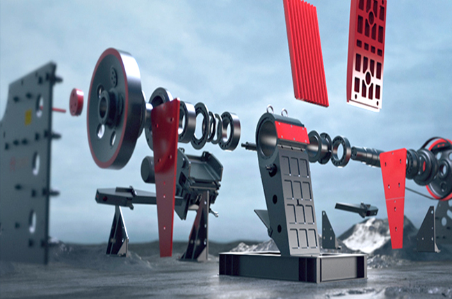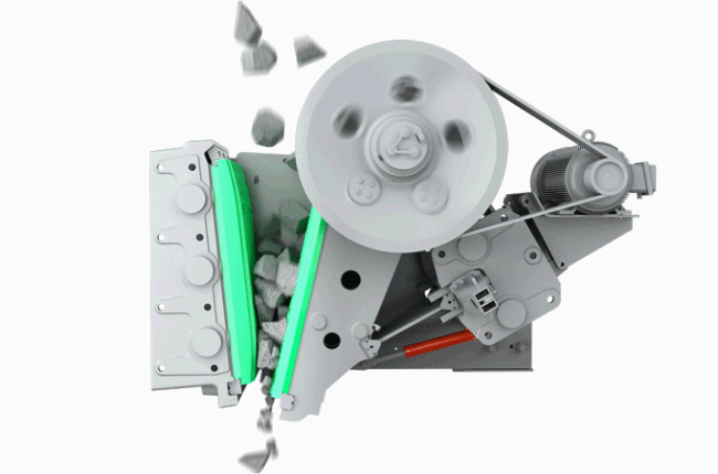 CJ系列歐版顎式破碎機工作時,電動機驅(qū)動皮帶和皮帶輪,通過偏心軸使動顎上下運動,當動顎上升時肘板與動顎間夾角變大,從而推動動顎板向固定顎板接近,與其同時物料被壓碎或劈碎,達到破碎的目的;當動顎下行時,肘板與動顎夾角變小,動顎板在拉桿、彈簧的作用下,離開固定顎板,此時已破碎物料從破碎腔下口排出。