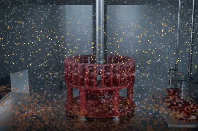 攪拌桶結(jié)構(gòu)設(shè)計(jì)合理,工作時(shí),攪拌桶的攪拌葉片設(shè)計(jì)為扇形,這樣一來可攪拌時(shí)與介質(zhì)接觸面積大,從而達(dá)到對物料攪拌均勻。