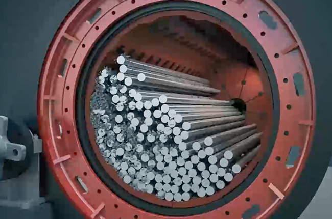 棒磨機(jī)主要用于長(zhǎng)石,石英和鵝卵石等礦石材料的加工和破碎。鋼棒隨磨機(jī)旋轉(zhuǎn),在摩擦力和離心力的作用下上升到一定的高度并被拋下,使物料持續(xù)受到撞擊形成制砂。